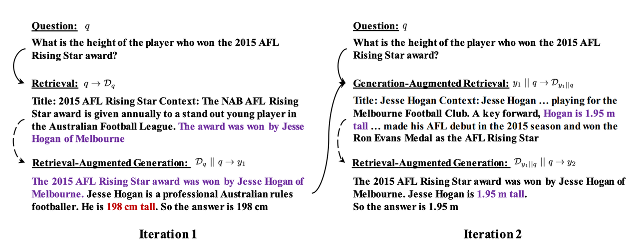 - 模型每轮生成的答案会与原始问题拼接,作为下一轮检索的查询。